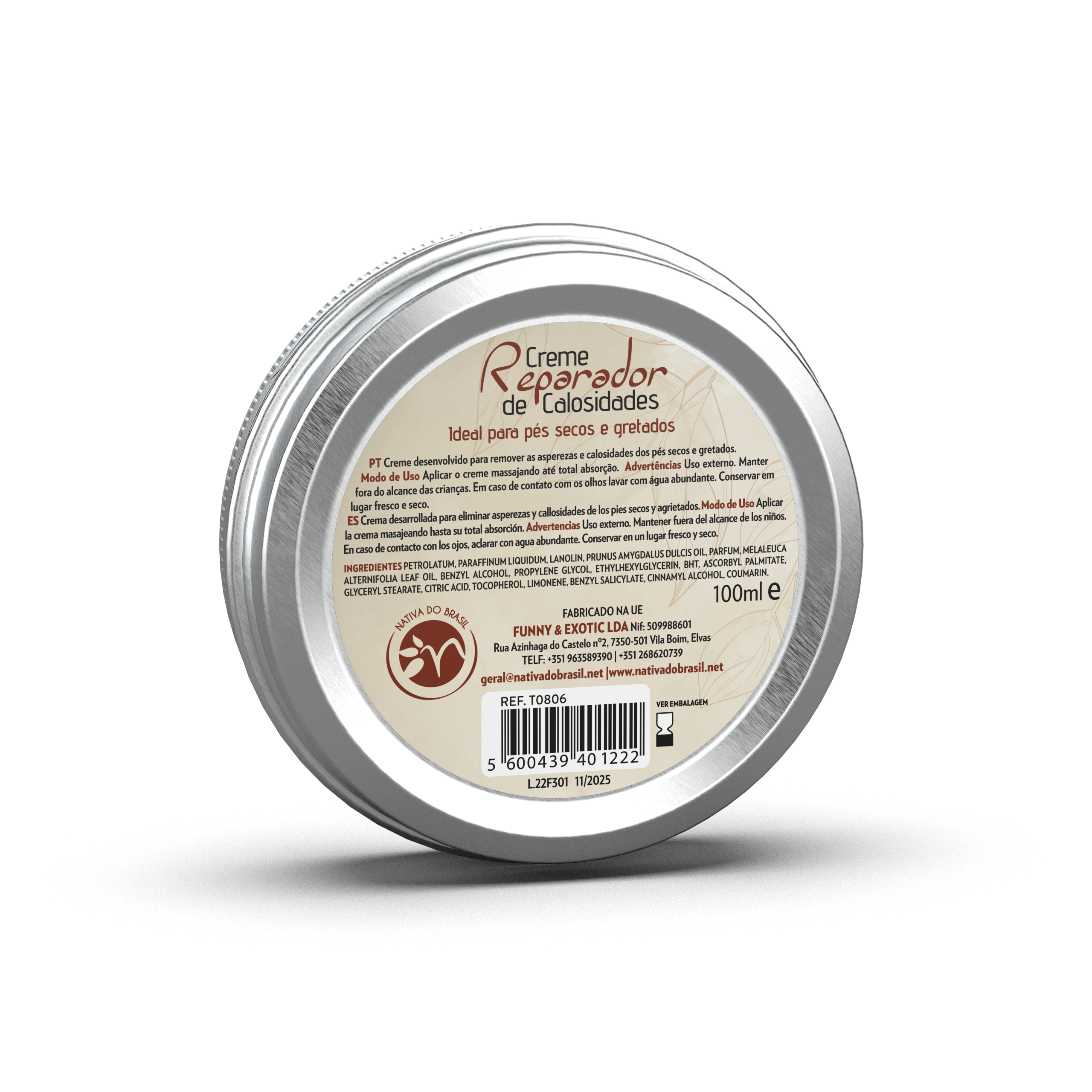 Creme Reparador de Calosidades, desenvolvido para remover as asperezas e calosidades dos pés secos e gretados.